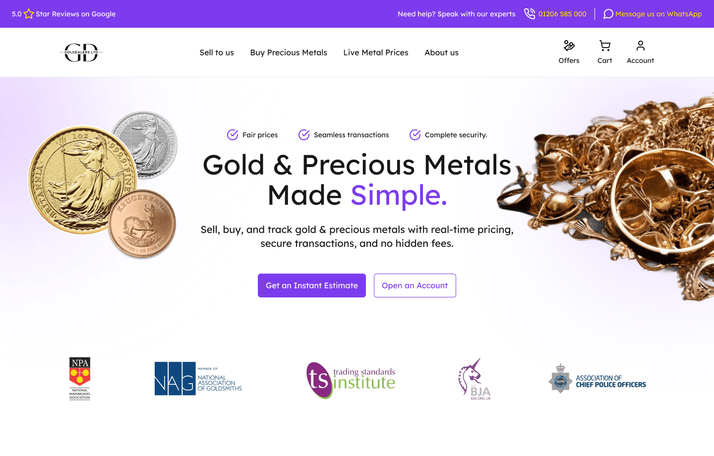 Goldealers is a family-run UK business specializing in precious metals since 2006. Known for secure transactions, honest staff, and transparent pricing, the in-store experience had earned them deep customer trust. But their website failed to reflect this—leaving online visitors skeptical, especially first-time sellers facing an unfamiliar, high-stakes process.