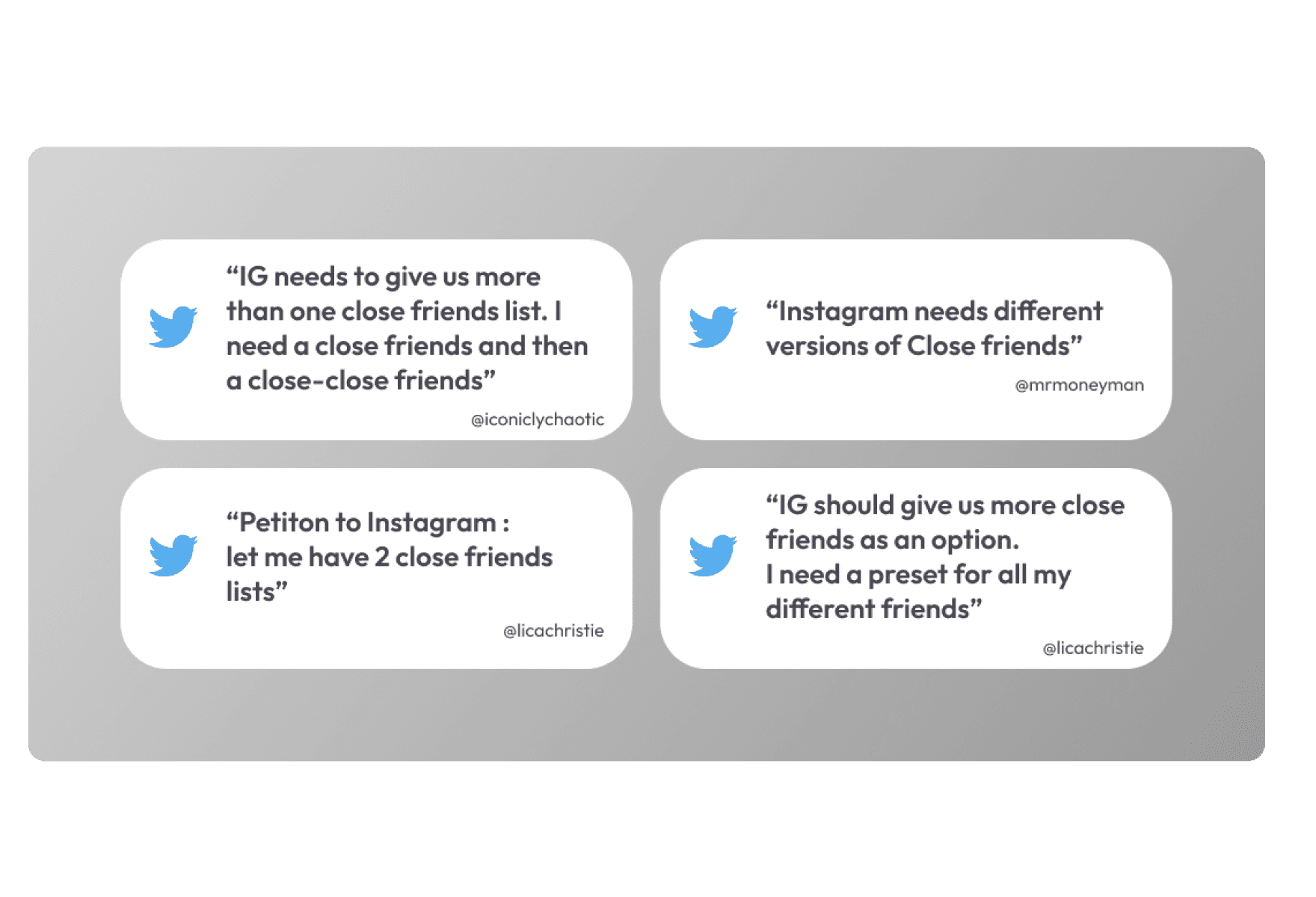 A key aspect of sharing is controlling who sees our content. While Instagram's 'Close Friends' feature provides some control, it falls short by offering only one list. This limitation prevents users from creating multiple personalized lists, resulting in a rigid, one-size-fits-all approach.