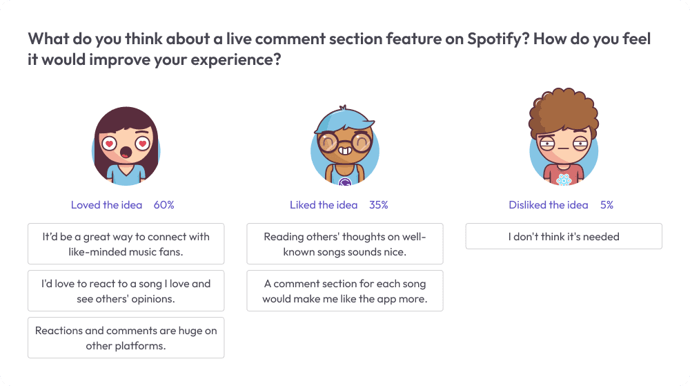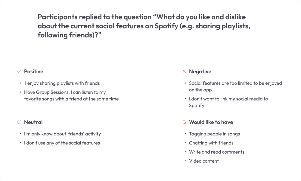 To gather direct insights, I surveyed 20 daily Spotify users aged 18 to late 30s. This approach provided valuable, first-hand information from the target audience.