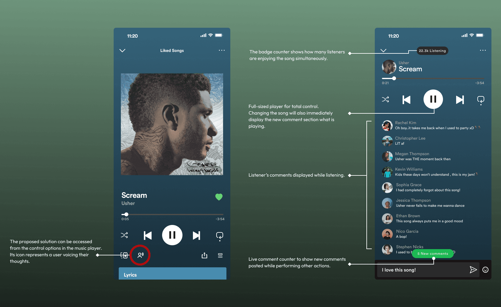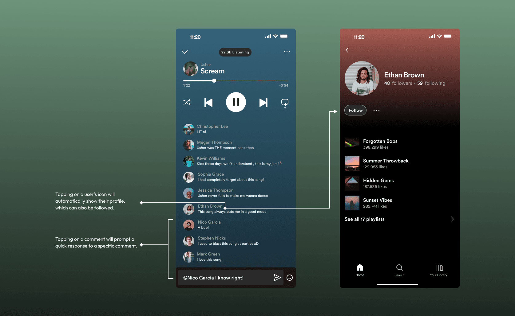 Provide Jessica and Mark with an in-app space where they can have a more immersive, socially engaging and satisfying listening experience.